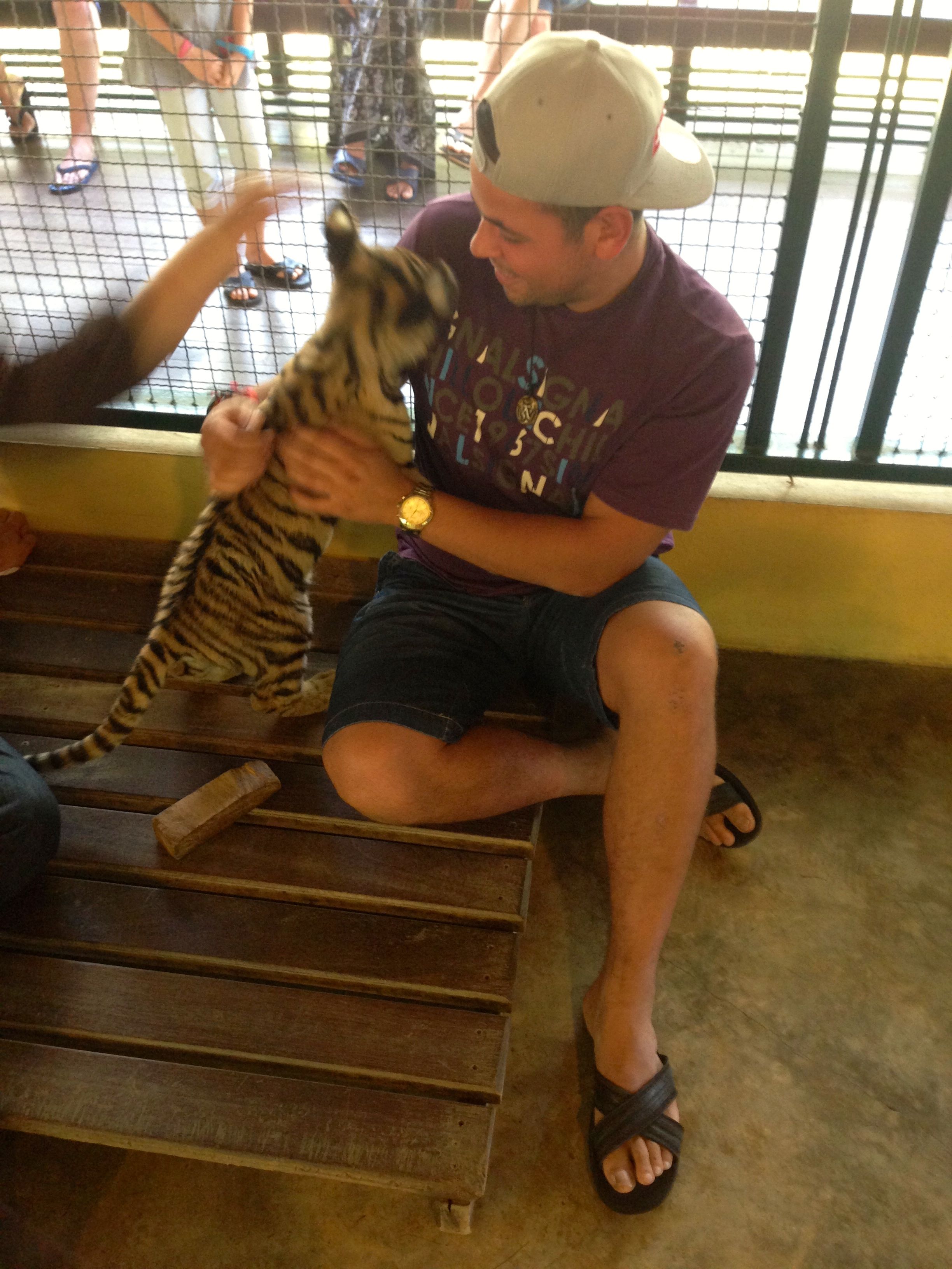 Hold en tigerunge i Tiger Kingdom Chiang Mai Thailand