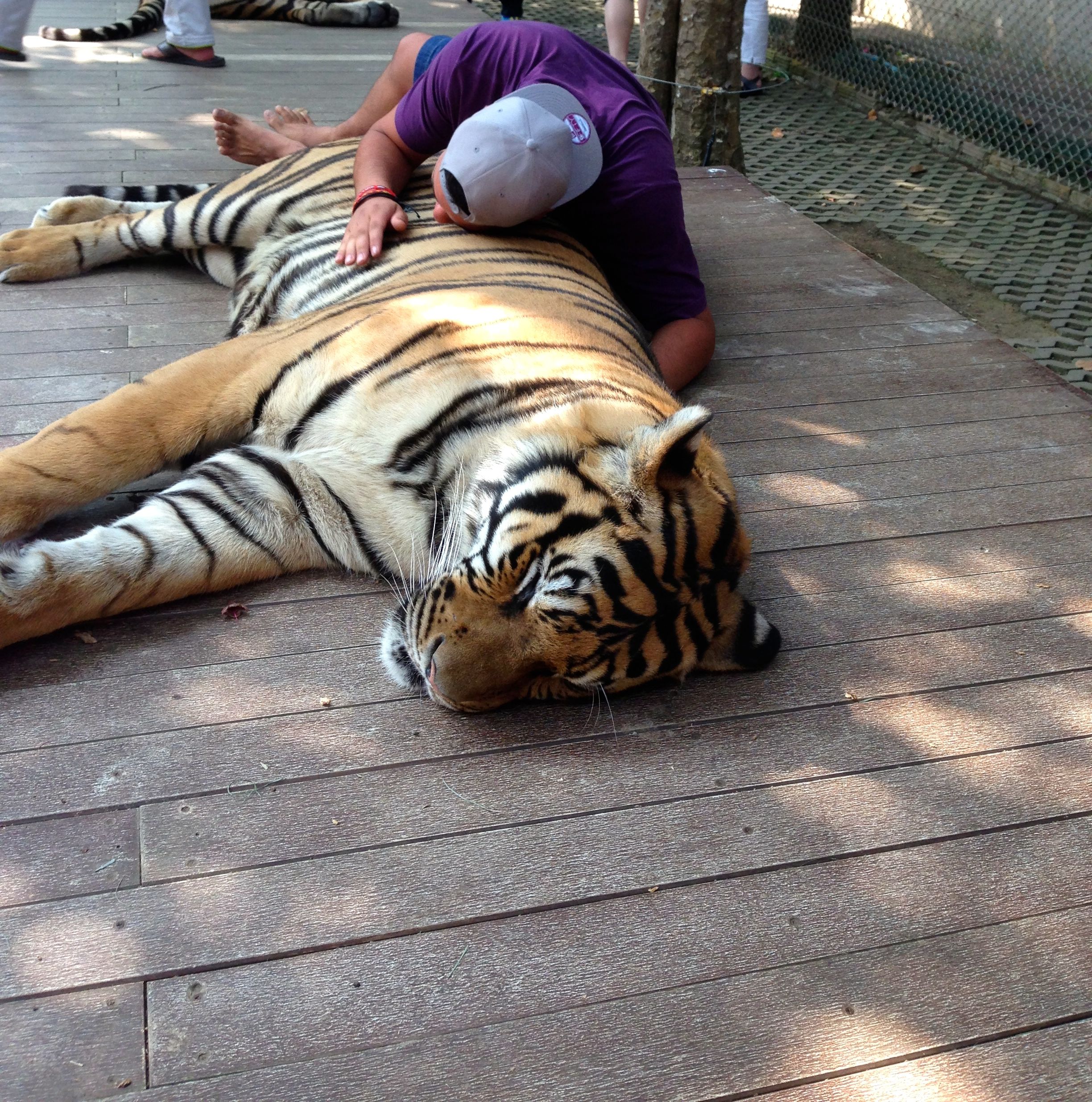 Men noget man ligger mærke til er, alle de plakater de har hængende om at deres tiger IKKE er dopet. Men er tigerne egentlig dopet? Jeg tror ikke at alle tigerne var dopet. Men de store tigere tror jeg er. De rørte sig knap nok, hvorimod de små tigere var meget sjovere at være i selskab med. Forholdene omkring tigerne synes jeg ikke var brutale på nogen betænklige måder. Tværtimod, så tror jeg faktisk tigerne(dem der var ved bevidsthed) levede nogenlunde fint. Store bure og masser af redskaber de kunne lege med, og selvfølgelig hundredevis af gæster der dagligt kommer for at hilse på.