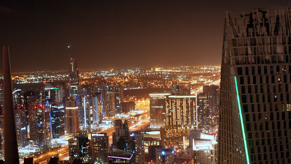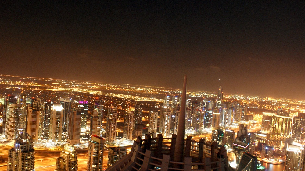 The view from lue balcony in Dubai Marina – UAE.